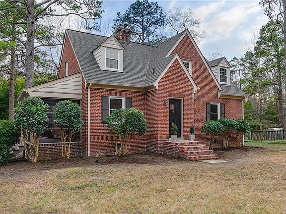 Handsome 1940s brick cape with double peaked roof is sited on a large lot (almost an acre!) with ample rear parking and a great yard for play! The versatile floor plan with fresh, neutral paint throughout features living and dining rooms, wood floors upstairs and down, kitchen with new floor, 2 bedrooms down + 2 bedrooms on the second floor and 2 full baths. The unfinished basement provides great storage, and the side and rear screened porches add additional space for relaxing and entertaining. Many updates include the roof (new 2018), propane gas boiler (2018), and new windows throughout! Just minutes from Bon Air and convenient to Chippenham and the Powhite Parkway! Priced to sell!