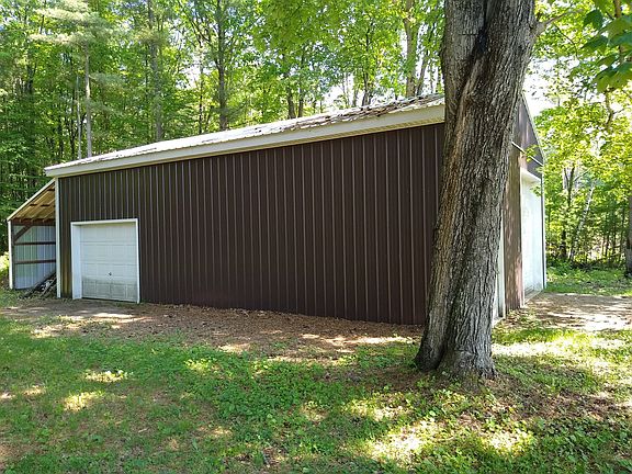 1433 square foot Ranch style home on 2.78 ac+/-.. This log sided home with 2 car attached garage has 3 bedrooms, living room with wood fireplace, formal dining room and 1 full bath. Enjoy the outdoors from the covered deck with an adirondack views and large pine trees. Also included with the property is a 24' x 40' pole barn with 2 overhead doors and electric.