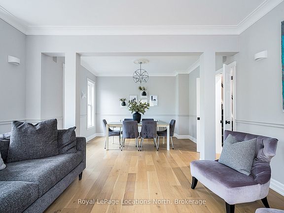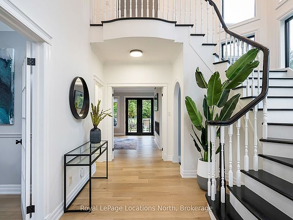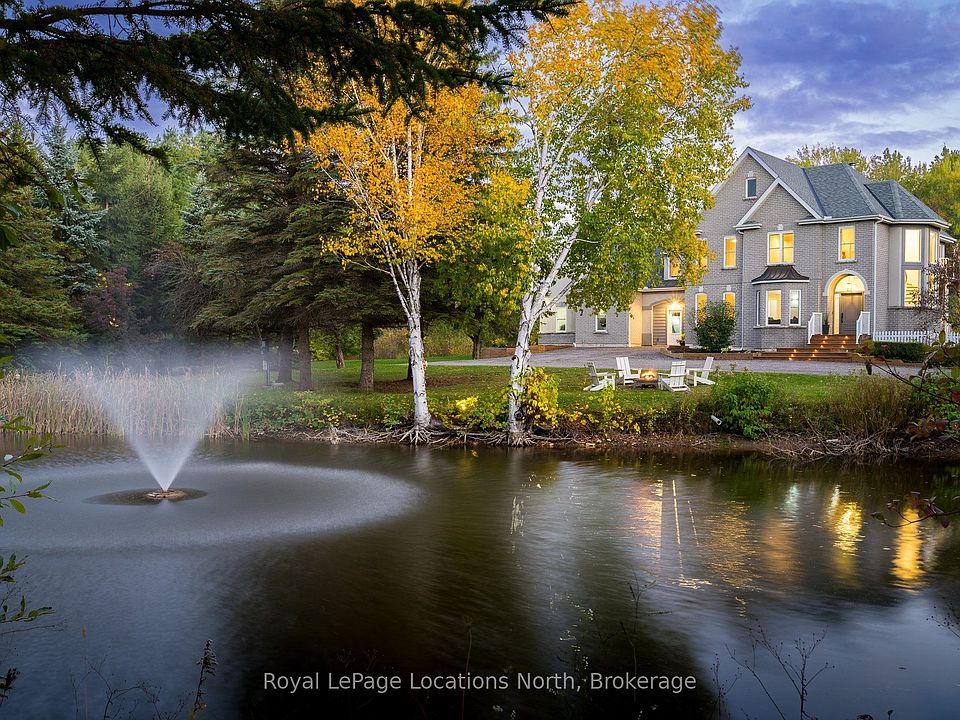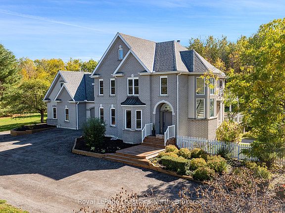 Welcome to an extraordinary 14.95-acre country estate that defines luxury living in the heart of Collingwood. Just minutes from downtown yet surrounded by the serenity of nature, this remarkable property offers a harmonious balance of elegance, privacy, and lifestyle - an idyllic retreat for those who value space and sophistication. A picturesque maple-lined driveway winds through the property, leading to a tranquil pond and fountain that set the tone for the residence beyond. The beautifully updated main home spans over 4,300 square feet, featuring 5 bedrooms and 6 bathrooms, thoughtfully reimagined with refined modern finishes. Three fireplaces, dual staircases, and ensuites in every bedroom speak to the home's quality and craftsmanship, while multiple walkouts open seamlessly to expansive terraces, patios, and decks - perfect for entertaining or quiet moments immersed in nature. Every element has been carefully curated, from new windows and floors to the roof, driveway, and professional landscaping, ensuring a timeless and inviting atmosphere. Enhancing the estate's appeal is the 2023-built guest residence, an approved Accessory Dwelling Unit (ADU) by Clearview Township. This 1,800-square-foot home features 2 bedrooms and 2 bathrooms, exuding the same level of luxury and style. Connected to a heated pool and generous deck, it offers endless possibilities - an elegant in-law suite, private guest quarters, or an income-generating retreat for seasonal visitors. The back 10 acres offer private trails that border scenic apple orchards and provide breathtaking views toward Osler Bluff. Mature maples and fruit trees frame the landscape, creating a true four-season sanctuary. Few properties offer such a rare combination of scale, privacy, and proximity to downtown Collingwood. This exceptional estate captures the essence of refined country living - where luxury, nature, and lifestyle meet in perfect harmony.