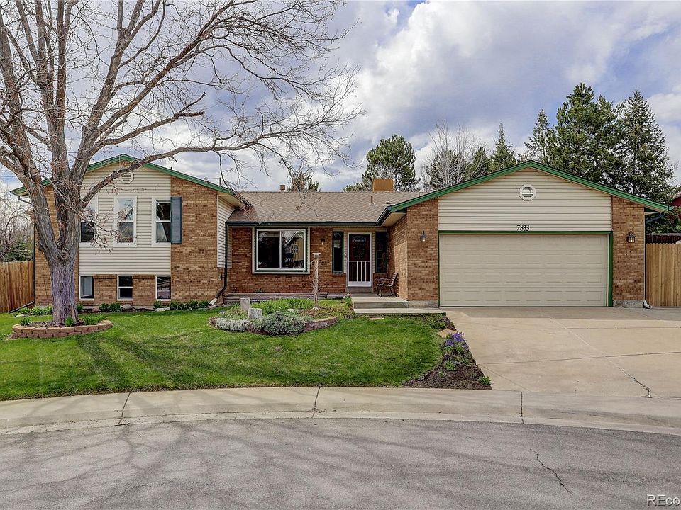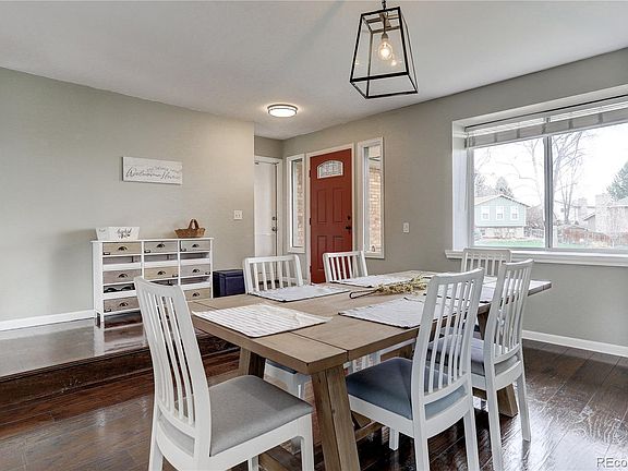 Welcome Home! This spacious 4 bedroom, 2 bath home is situated in a quiet cul-de-sac in the Columbine Hills neighborhood. The location is convenient to Santa Fe Drive, Highway 470, the RTD lightrail, and several parks. The home has gleaming wood floors in the main living spaces. New carpet can be found in all bedrooms and garden level family room. The big, bright kitchen has been updated with quartz countertops, modern gray cabinets with lots of pantry storage, clean white subway tile backsplash, and stainless steel appliances. Light fixtures and ceiling fans have all been updated. The furnace, water heater, and evaporative cooler were all replaced in 2018. Sunrun Solar was installed in 2019. Yes, this home is a hybrid home! This home receives part of its power from solar technology and the rest from the local utility company. This home is receiving less expensive power than other homes in the neighborhood at a fixed, predictable rate. Many doors and windows have been replaced throughout. The home features a private master suite with French door entry, his and her closets, and a private 3/4 bath. Three additional bedrooms are located on the main level and share a full bathroom. The cozy garden level family room is perfect for movie nights or game nights. The unfinished basement boasts 637 SqFt with tons of storage and lots of potential, perhaps a gym, workshop, or playroom? The enormous, fully fenced backyard is a dream! The large Trex deck is a fabulous place for entertaining and grilling. The grassy backyard also features an area with a firepit, a garden area, shed, and RV parking pad. Look no further, you have found your new home in lovely Littleton, Colorado!