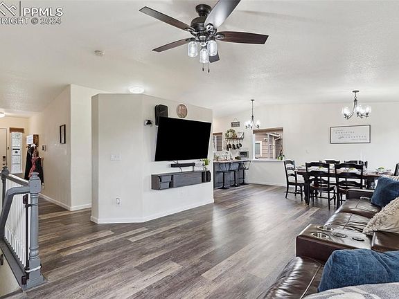 This remarkable 3347 sq. ft. residence comfortably encompasses the entire corner of the street, with a beautiful balance between size and function, offering 5 bedrooms, 3 bathrooms, and an ADDITIONAL OFFICE. This updated design includes new, durable flooring ideal for families and pets, complemented by abundant windows that invite natural light. The kitchen, remodeled along with the flooring in May 2023, is a chef’s dream with LOADS OF FUNCTIONAL STORAGE, three lazy Susans', a blind corner shelf, utensil pull-out, a FULL SIZED PANTRY, and efficient PULL OUT DRAWERS for 2 trash cans. NEW APPLIANCES , including a double oven and a three-tier refrigerator, ensure culinary excellence. What sets this home apart from others, you ask? Lets dive in: additional highlights include a BUILT-IN WALL SAFE, UPGRADED PEX plumbing with individual water shut-offs, as well as SMART HOME LIGHT SWITCHES to offer energy efficiency and are app compatible with smart phones. To top it off, this home is equipped with a WIFI ENABLED SPRIKLER SYSTEM for precise front yard irrigation, and a PROPER SIZED AC unit to evenly cool the whole home. The garden-level basement, featuring a cozy FIREPLACE, is exceptionally spacious to double as family room, PLAY ROOM, ect. Previous homeowners capitalized on the backyards locations and added a large STREET FACING GATE, for easy access and movement of vehicles, equipment, and recreational items. Ample PANTRY STORAGE and generously sized basement bedrooms also add to the home's appeal and function. You'll notice the pride of ownership from every neighbor as you drive through the street and into the cul-de-sac. Experience the Community at quarterly neighborhood events and weekly Food Trucks —conveniently located**5min from Grocery, Starbucks, Emergency Care, Local Market, & Home improvement, **10min from FORT CARSON ARMY POST, PETERSON AIRFORCE BASE, SCHRIEVER AIR FORCE BASE