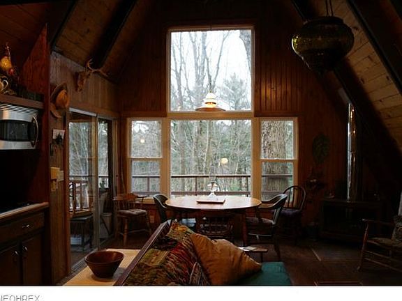 Cozy A-frame cabin with seasonal lake views at Leesville Lake. Nestled on 5 total parcels. Newer front wall with newer windows to enjoy your lake views. Newer kitchen with some appliances. Most furnishings stay. Enjoy get-away weekends this summer! Bring your belly tops, flip flops, enjoy the late nights, water fights....let the summer fun begin now!