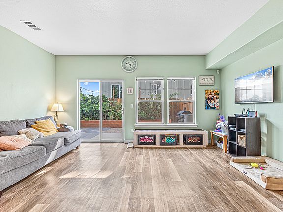 This Beautiful end unit townhome is move in ready!! The spacious open floor plan offers over 1525 sqft with 3 bedrooms and 2.5 bathrooms. New flooring installed downstairs along with a fresh coat of paint throughout the entire home. Downstairs bathroom has a cute feature wall, while the upstairs main bathroom has been fully remodeled with custom countertop and groutable vinyl tile. The master bedroom has two large closets and double vanity sinks. Laundry is located upstairs along with an oversized linen closet. The slider leads to a fully paved and fenced backyard oasis with raised garden beds. Side yard completely graveled and partially fenced with potential room for a storage shed. HOA covers water, sewer and front yard landscaping.