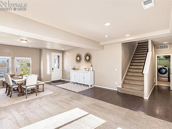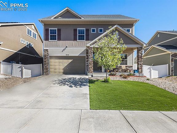 Welcome home — to where comfort meets charm in the heart of Fountain’s beloved neighborhood. Located on a family friendly road. This home doesn’t just catch your eye with its beautiful curb appeal — it draws you in with the promise of something more: space to grow, to gather, and to make memories that last. Step inside, and a sun-drenched foyer greets you, setting the tone for the warmth that flows through every room. The open-concept layout was made for connection. Picture yourself curled up by the fireplace on a snowy Colorado evening, shelves filled with your favorite books, family photos, and keepsakes from life’s little adventures. This home offers practical comfort, too — with dual central air systems for year-round climate control and a roomy two-car garage ready for your bikes, tools, and weekend projects. The kitchen is a true heart-of-the-home moment. With sleek stainless steel smart appliances, endless counter space, and a large island perfect for Sunday morning pancakes or wine with friends, it’s as functional as it is beautiful. And the farmhouse sink, It’s the kind of detail that makes washing dishes feel like a quiet luxury. Upstairs, your primary suite becomes your sanctuary. A spacious walk-in closet and spa-like five-piece bathroom turn everyday routines into moments of calm. Down the hall, you’ll find three additional bedrooms — ideal for little ones, guests, or a tucked-away home office that gets morning light. Step outside, and the story continues. Fresh, vibrant grass invites barefoot afternoons, while the stamped concrete patio sets the stage for unforgettable summer barbecues and quiet nights under the stars. And thanks to the fully irrigated sprinkler system, the lush green stays that way with ease. Just minutes from shopping, dining, and Fort Carson, this home is more than a place to live — it’s a place to thrive. Come see where your next chapter begins.
