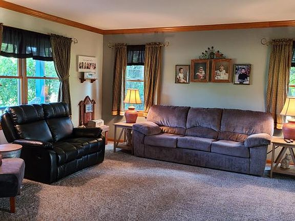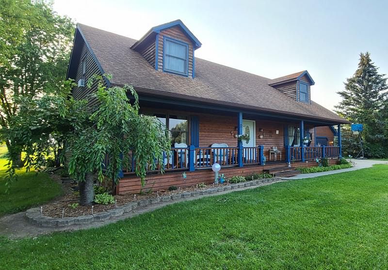 COUNTRY LIVING- Custom Cape Cod 4 BR family home with country flair on 10 acres. Sit on the covered front porch, or the sunny back deck and enjoy the view. 2 Main floor bedrooms, laundry and 2 baths. 2 BR and 3rd bath upstairs. Finished craft/office space in lower level and 44 ft. unfinished recreation area with walk-out access to back yard. Tons of storage and an attached 2.5 car garage. Small shed and 32'x 16' above ground pool with deck are included. Farmer has rights to the crops on the back 4 acres. Make an appointment please.
