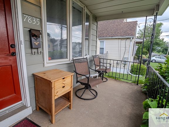 Welcome to 7835 Birmingham, a detached home located in the Parkville Heights neighborhood. This property offers three bedrooms, two full bathrooms, and one half bathroom, spread across three levels including a finished basement. The home features a mix of hardwood and carpet flooring throughout. Climate control is provided by central AC, with one additional window unit included. The kitchen is equipped with a refrigerator, gas stove, built-in microwave, dishwasher, and disposal. A decorative fireplace adds character to the basement space. The exterior includes a chain link fence and parking is available both on the street and in the driveway. Pets are considered on a case-by-case basis. The property offers views of neighboring houses and is situated in a residential setting.