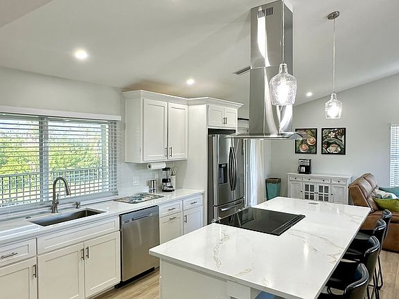 -Modern Kitchen: Enjoy cooking in the fully equipped kitchen with stainless steel appliances, a large island with bar seating, and plenty of counter space, perfect for casual meals or entertaining.