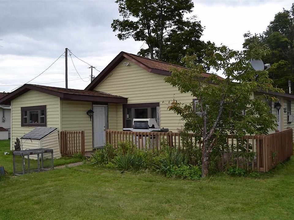 Enjoy 55 feet of beautiful lakefront Sandy Beach on Lake Pleasant, a 424 acre lake with skiing from dawn till dusk. This rustic 2 bedroom, 1 bath cottage boasts beautiful lakeviews from its deck and from the cozy living room with Knotty Pine interior, eat in Kitchen across lakeside. Family room for card playing and games! Extra storage available in the shed. Some furniture will stay. Call today for schedule your showing! Home is connected to city sewers!