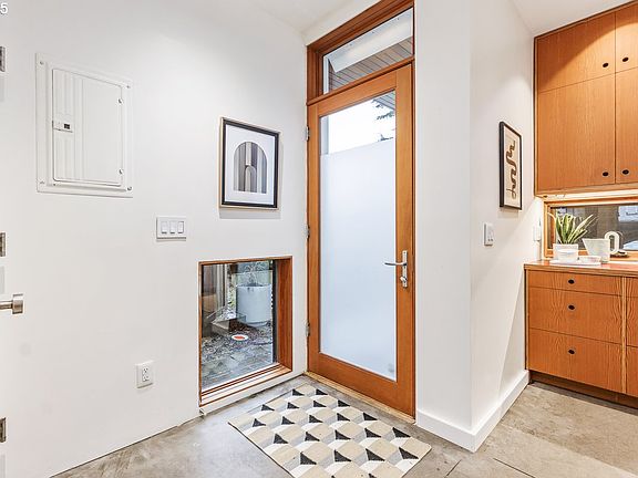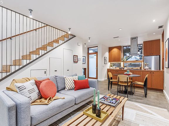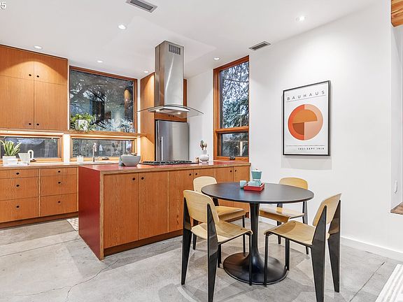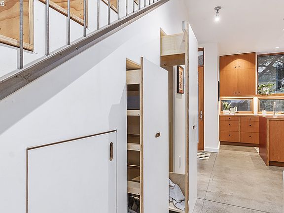 Want a totally rare unicorn treehouse to live/work/dream? Check this architect design-build in cool Kenton, nestled in the trees with epic yard and ample storage for all your bikes and gear. Designed with net-zero possibilities, you'll be smitten with the open-concept kitchen and living spaces with custom cabinets and massive windows that maximize all the light and treed views, yet still remains ultra private like you're tucked away in a fern gully. With perfect energy score, this highly efficient newer build features cozy concrete floors with hydronic radiant heat, on demand tankless water heater and heat-recovery ventilator for supreme comfort / low-impact living. The square footage here lives extra-large with soaring ceilings and expansive wood-clad aluminum windows that bring the garden vibes inside year-round. Upstairs, you'll find a modern bathroom with new stacked washer/dryer and massive primary bedroom / office, combined for easy living and clean lines. Smart storage was added beneath the stairs, offering room to tuck away your gear and gadgets. Outside, there's a private patio and lush garden with professional reclaimed landscaping and small greenhouse, plus large storage shed with bike racks and even more space to relax and/or park your car or RV. A truly remarkable property in an ideal location. OFFER DEADLINE MONDAY @3PM.