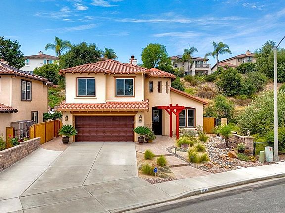 FANTASTIC location on a DOUBLE cul-de-sac, NO NEIGHBOR on one side, in the highly sought after La Costa Valley!! This meticulously maintained home features many great upgrades - including PAID OFF solar, 2 Tesla Powerwall Back Up Batteries and an AeroVironment 240v EV Charging Station! New Anderson windows were installed this year. Enjoy the whole house fan along with AC. As you enter, you'll appreciate the tall ceilings and an abundance of natural light! The kitchen was previously remodeled to include....new cabinets, enlarged the island, added a walk-in pantry, wine fridge & a gorgeous La Cantina Tri-Folding Door to the back patio! The family room is SPACIOUS and open to the kitchen/back yard. The upstairs boasts beautiful engineered hardwood flooring, a large open loft with the primary bedroom on one side and the additional 3 bedrooms on the other. There is the option to easily convert the 3rd bay in the garage to a 5th downstairs bedroom - a FULL BATH is adjacent! Enjoy the ample, peaceful backyard with views to open/protected space! The private Swim Spa allows you to either relax in the spa or enjoy a water workout in this Catalina ProSwim System. The patio was expanded to feature multi-level paver decks and turf on the side yard, creating plenty of entertaining space! Enjoy the Plum, Lemon, Macadamia & Pomegranate trees!! Both the front & back yards are drought tolerant with drip installed. It's a short walk to the elementary school. Valley Club amenities include an Olympic sized pool/spa, kid pool, tennis & pickleball courts, playgrounds, clubhouse, fitness center, meeting room, walking trails & more! Excellent school district and close to shops, grocery, great restaurants, coffee shops & the list goes on!! Don't miss this fabulous home featuring one of the best locations in La Costa Valley!