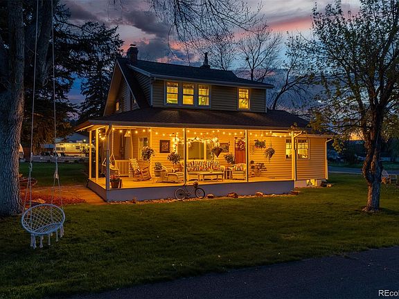 Welcome to one of Louviers’ most iconic homes, a timeless 1911 Craftsman perched on a generous corner lot just over a third of an acre, bordering open space and the beloved village ball field. With a cheerful butter yellow exterior, vintage six-over-one windows, and mature trees framing the wraparound front porch and dreamy screened back porch, this residence embodies historic character and thoughtful design.