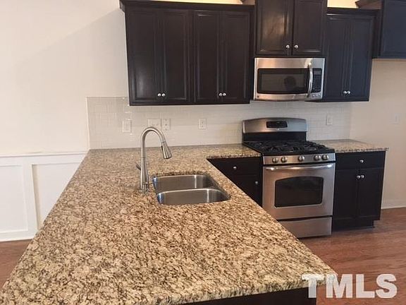 Fully upgraded townhome in prime NW Raleigh location, close to Glenwood Ave. Open floor plan. Wide plank hardwoods throughout 1st floor.Move in ready, Spacious living rm. Separate dining area. Bright & open eat-in kitchen includes granite tops, upgraded tile b-splash & stainless steelappliances. Large master suite offers cathedral ceiling, tiled bath floors, oversized shower & dual vanity. 2nd bedroom with private bath and tile floors.Upgraded carpet & light fixtures. Close to community pool. Owners Pays HOA. Tenant pays Utilities