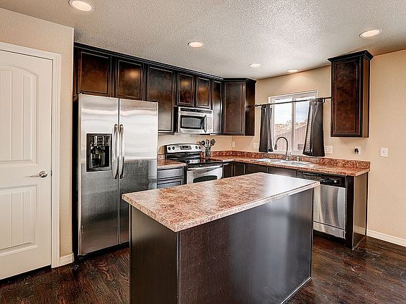 Exceptional two story home located in Fountain Colorado and built in 2013. Main level offers: Open floor plan that encompasses the large living room,dining area & kitchen as one - perfect for entertaining a large amount family and friends. Tiled entry-way, casual living area (office / game-play room) with adjoining 1/2 guest bath. Kitchen with island includes electric range/oven, dishwasher, built-in microwave oven, lots of counter top space, cabinets and pantry provide appreciated storage. Upper level offers: Huge master suite with stunning views of the front range and Pikes Peak, five piece luxury master bath with seperate, walk-in shower, his & hers vanities all accented with contemporary colored ceramic tile. Enter the spacious walk-in closet from the master bath. Be sure and notice the size of the remaining 3 upper level bedrooms as they are surprisingly large and offer wonderful views in their own right. Upper level full main bath is beautifully finished in earth tone ceramic tile. Laundry room offers ceramic tile flooring and is conveniently located on the upper level. Two car attached garage with interior entry. Front and rear landscape features trees, faux lawn, both accented with rock and brick/block walls Home is just a short 5-10 minute drive to the Ft. Carson gate and is within minutes of shopping, fast food & sit down dining restaurants.