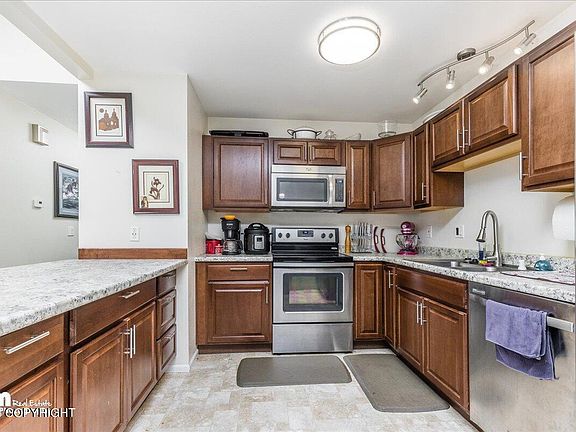 NO HOA DUES! This updated 3 bed 1 bath is ready for its new owners! Beautifully updated kitchen with stainless steel appliances! Located in a cul-de-sac that's an easy commute to JBER and shopping. Vaulted ceilings in the main living area and a fenced in backyard. Two sheds in the back yard. One shed has power and heat.