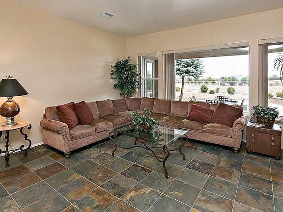 Pronghorn Ranch Beautiful Former Model Home! 2248 SqFt, 4 BD/2BA/3GAR + Formal Living & Dining Rms + Family Rm. Formal Living Rm w/Gorgeous Slate Tile Flooring, High Ceilings, Designer Paint, Ceiling Speakers, View Windows With Window Blinds. Open Kitchen w/Quartz Counters & Island, Stainless Upgraded Appliances, 42'' Upper Cabinets, Pantry Closet w/Glass French Door, Cooks Desk & Arched Entries. Family Rm w/Stacked Stone Fireplace. French Door to Patio,Designer Ceiling Fan, Media & Art Niches w/Lighting. Inside Laundry Room w/Cabinetry, Washer & Dryer. Entertaining Rear Yard with EZ Landscaping, Covered & Extended Patios, In Ground Hot Tub & Mountain Views! Many Upgrades - See Upgrade List & Floor Plan.