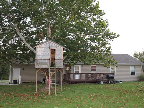 Outdoor space is plentiful with this 3 bed/2 ba ranch home sitting on 1.32 acres in a country subdivision with easy access to everywhere. The family will enjoy the huge outdoor deck or covered front porch or the kid-friendly play area with wooden play set and fire-pit. Find extra fun in the custom built tree house or on the spacious lawn for all your activities. Features inside include all stainless appliances in the spacious kitchen, new paint, new carpet, newer roof, water softener and huge 2-1/2 car garage with shelving. Extremely low property taxes. Close to schools, shopping, hospital and more. No covenants, restrictions or HOA dues! Extra parking space for RV/trailer located at rear of property. Home is well-cared for.