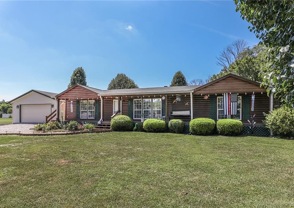 Neat and clean home with a country setting on nearly 2 acres. Nice 24x24 detached garage for cars, tools and toys. Home has great curb appeal with some beautiful plants and trees. Home is in a quiet location and has a covered porch, large yard and fenced in dog pen. Home has 3 bedrooms and 2 full baths. Large living room with wood burning fireplace, separate but open dining area, plus a large kitchen with lots of counter space. Kitchen also has a 7x5 walk in pantry. Home has walk in closets in every bedroom. All appliances and swing set are included.
