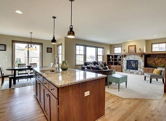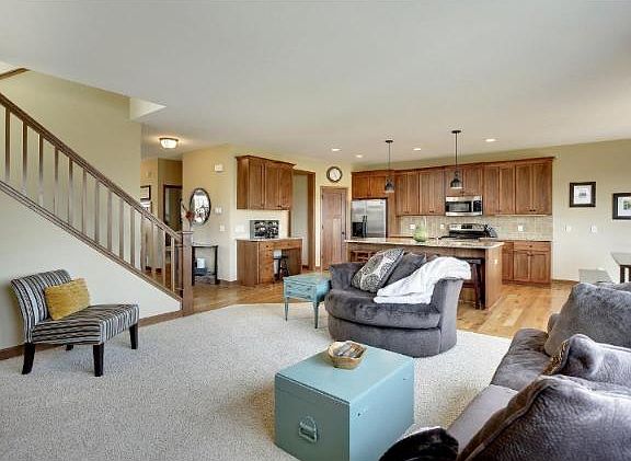 Gorgeous home that shows like a model. Granite S/S appliances, Maple Cabinets, tile fireplace, built-ins, hardwood floors, 3 panel doors, massive Kitchen Island, James Hardy siding, walk out lower level and spacious front porch. Open floor concept designed to entertain. See today!, Directions Hwy 13 to Zinran Ave to 150th St W to Stafford Trail to home.