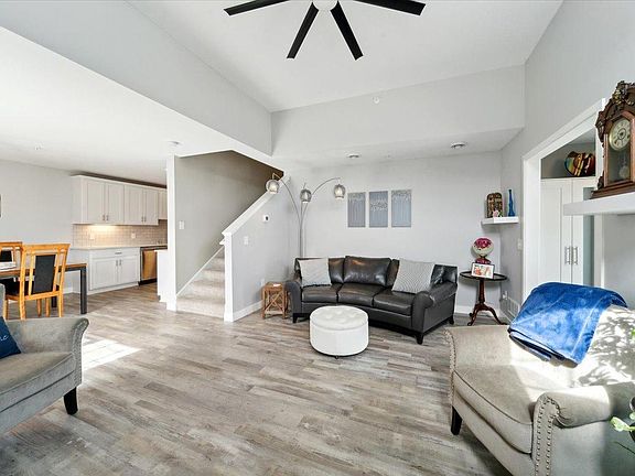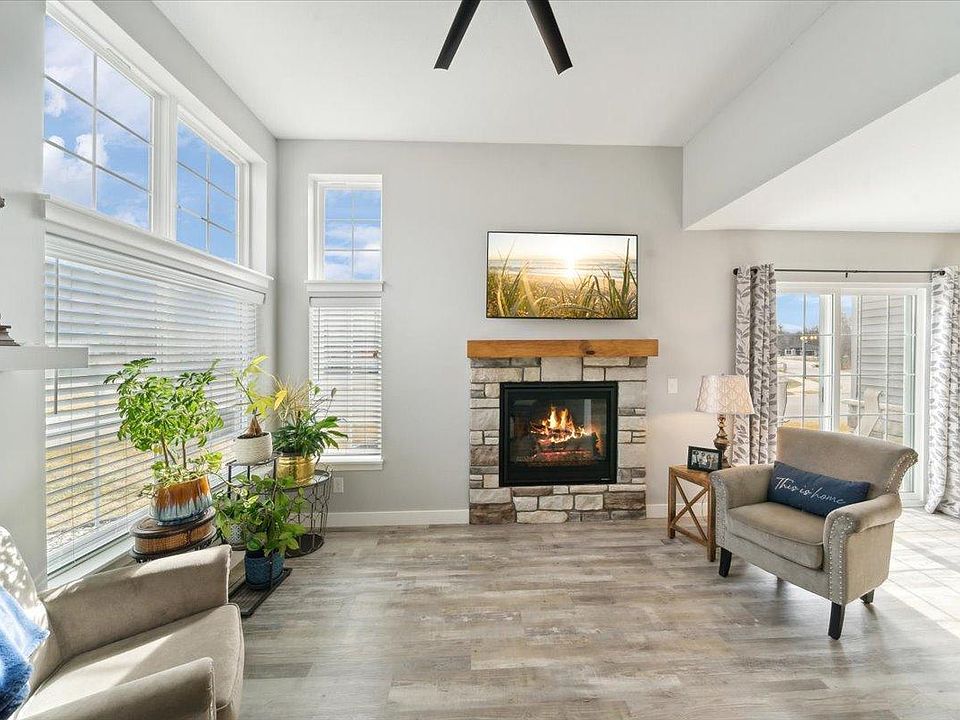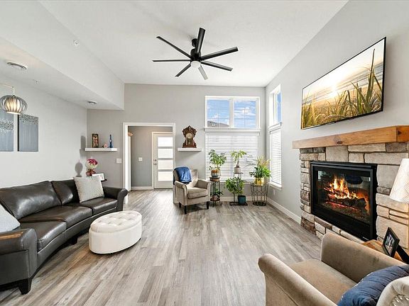 NEW as can be and ready for you to move in! Situated on a corner lot, this end unit townhome is bright and spacious with tons of natural light, 9 foot ceilings, stylish white enamel trim and woodwork throughout. Homeowner chose many upgrades including the stacked-stone fireplace and white kitchen cabinets, granite countertops, and LVP on the entire main level. Additionally, seller installed a water softener, window treatments, high-end hardware, ceiling fans in all bedrooms and living room, and updated paint in many of the rooms. Wonderfully maintained, feels "brand new" and is move-in ready for the pickiest of buyers. Three bedrooms and roomy laundry on upper level. Amazing primary ensuite with large walk-in closet. Walk-out from your living room to the patio and enjoy the Spring weather. Walk to restaurants, shopping and more. Easy access to freeway, parks, and more.