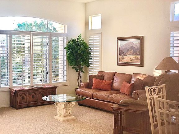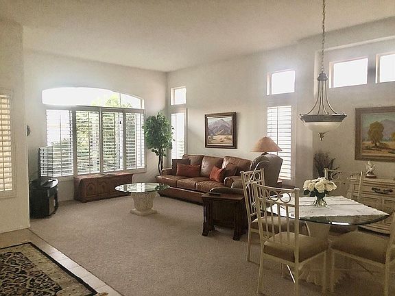 Reserved 11/22 - 3/23. Adorable Tiffany model turnkey furnished with 3 TV's, 2 bedrooms, 2 bathrooms, Living room and dining room off the front entry. Kitchen and family room open onto a covered patio with BBQ. Sun City Palm Desert is a 55+, gated community with 2 golf courses community pools, tennis, pickle ball, club houses, postal center, and so much more. Utilities, Cable TV and Wi-Fi paid by Landlord.