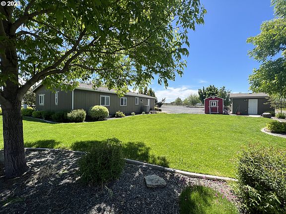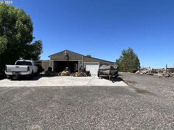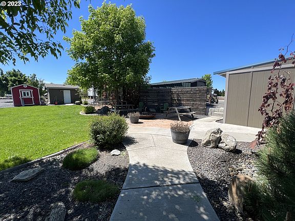 Come home, enjoy dinner and de-stress on the pergola covered patio and take in the serene park-like setting. Lots of mature trees and landscaping for privacy and shade. Inside the home you'll find an open concept design with the kitchen and dining areas being the focus with gorgeous cabinets, eating bar and display shelves in the dining with tile flooring. Fridge, Stove, Dishwasher, Washer & Dryer are included. Vaulted ceilings throughout. Carpet in bdrms and living room. Primary bdrm has updated bathroom vanity and LVP flooring. Main bath also updated. The extra space by the back door/laundry can be used as a mud room or add shelves and use as a pantry. Other amenities you may want to know: New PEX waterlines from well to house. On Demand system for well. Roof on home about 7 yrs old. In the shop: floor is extra thick to allow for a 2-post lift should someone want to install in the future, large roll-up doors are automatic, small roll-up doors are manual, lighting, 220 power, includes ceiling heaters and fan. Chicken coop included. Blocks and awnings on West end of property are excluded - Once removed there is a large concrete slab that you can use for all sorts of ideas! The (2) storage containers on property are negotiable. Yard has timed underground sprinklers and concrete curbing. Call your favorite Realtor and set up a tour to see this home!