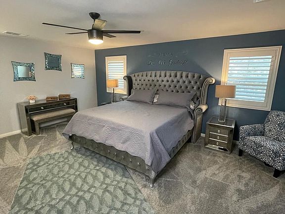 Please contact in advance to schedule a touring. Available tour dates from June 4th-7th, June 19th-30th. WELCOME! Located in CARMEL RIDGE at SPRING MOUNTAIN RANCH, this amazing 6 BEDROOM, 4 BATH, home with a HUGE LOFT will not disappoint! As you drive up to this home you will immediately notice that it has been PROFESSIONALLY LANDSCAPED. Park your RV behind the custom gates providing a 20ft clearance! There is plenty of room to park your cars in the 3 CAR GARAGE! Once inside the front door to your left is a DOWNSTAIRS BEDROOM with access to a BATHROOM with a WALK-IN SHOWER, perfect for your guests! Straight ahead is the formal DINING ROOM area and FAMILY ROOM, this space is open to a less formal dining area just off the kitchen. The KITCHEN features a MASSIVE ISLAND with BAR SEATING, a GAS RANGE, MICROWAVE, DISHWASHER. The PENDANT LIGHTING ties the space all together, around the corner is a BUTLER'S PANTRY & MUDROOM. The upstairs floor plan has a LOFT that can serve a second family room, game room, or office. There are three rooms on one half of the upstairs that share a bathroom with double sinks, leaving the second half of the upstairs for the MASTER BEDROOM SUITE with a SOAKING TUB, WALK-IN SHOWER, HUGE WALK-IN CLOSET, and views into the backyard. Not include utilities Include all furniture,move in with your luggage