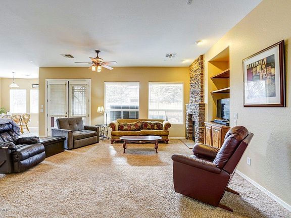 Beautiful upgraded well-maintained home in beautiful Pronghorn Ranch with open floor plan, dual zone heating and cooling, custom cabinets in living area, ceiling fans throughout, gas fireplace, double oven, granite countertops, custom security doors, drip system sprinkler, repainted in 2016, cobblestone patio surrounds fire pit for entertainment, dog run, hardwired networking cable throughout the house. This home is priced to sell quickly so schedule a showing today!