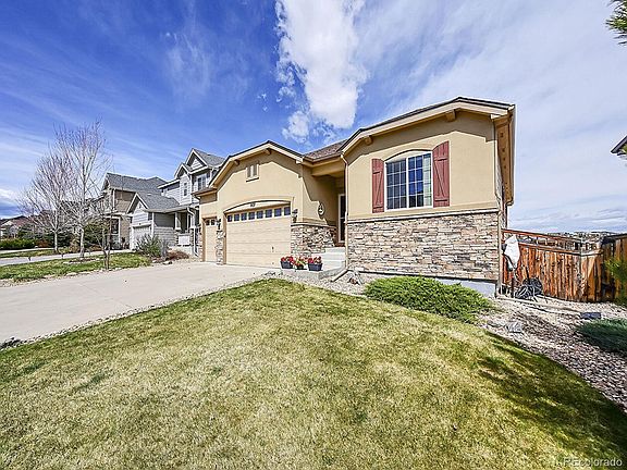 Welcome to your dream home perfectly situated between the charming downtowns of Castle Rock and Parker, Colorado. Nestled in the sought-after Cobblestone Ranch community, this ranch-style sanctuary offers the perfect blend of modern comfort and convenient access to urban amenities. Step inside to discover a spacious and inviting interior boasting upgraded finishes throughout. With five bedrooms and three bathrooms, including an updated primary bath, there's plenty of room for the whole family to spread out and relax. Entertain guests in the open-concept living area, where a cozy gas fireplace sets the mood for gatherings year-round. The adjacent kitchen is a chef's delight, featuring sleek countertops, stainless steel appliances, and ample cabinet space. Sliding glass doors lead to your private outdoor oasis, where a covered patio awaits al fresco dining and sunset views over the adjacent open space. Picture-perfect landscaping surrounds the home, creating a serene atmosphere for outdoor enjoyment. Escape to the finished basement, offering additional living space, perfect for a media room, home gym, or game room. Plus, with tons of storage space, you'll have plenty of room for all your belongings. Everyone will appreciate the attached three-car garage, providing ample space for vehicles, tools, and outdoor gear. And for those seeking relaxation, the newer hot tub beckons for soothing soaks under the stars, negotiable with the sale of the home. Experience the best of Colorado living in this stunning ranch-style retreat, perfectly positioned between the vibrant downtowns of Castle Rock and Parker, offering easy access to shopping, dining, entertainment, and more. New Roof in 2023!