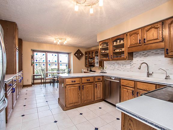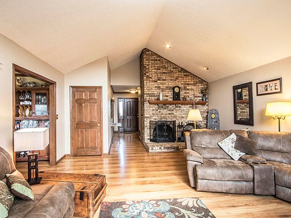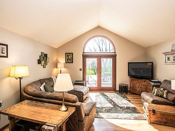 1.7 acres with lots of room to play. The 2 1/2 car garage with workshop area. Great room with cathedral ceilings and brick wood burning fireplace. Large kitchen with stainless steel appliances and solid surface counters and backsplash. Lots of cabinets and built in desk. Owner's suite has double closets and owner' updated bathroom. Large lower level with finished area. Huge 30 x 30 deck and covered patio for those outdoor evenings. Lots of room for gardening.
