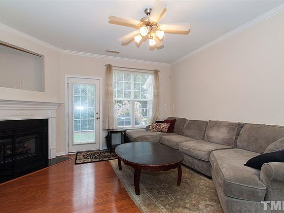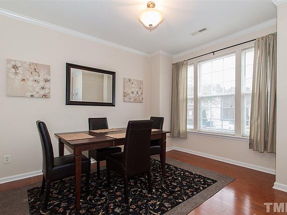 Charming Dual Master Bedroom townhome convenient to I-540, RDU, Brier Creek Mall & Umstead Park. 9' Ceilings along with Lovely Hardwood Floors on main level. Formal dining room. Kitchen offers 42" maple cabinets, Smooth Top Stove, Solid Surface Counters & Eat-in Bar area. Adjoining living room features a Gas Log Fireplace, access to Private Patio & Attached Storage. Main Master Bedroom has Vaulted Ceiling, Double Closet & Garden Tub. Large Second bedroom with Private Bath & Walk-in Closet. Community Pool