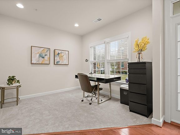 Welcome home to 7837 Tuckahoe Court in Howard County’s highly desirable Maple Lawn Community! This brick-front NV townhome is in pristine condition and fronts to one of the neighborhood’s coveted courtyards. The first floor features brand new carpet, fresh paint and a spacious office with full bathroom. The second floor features hardwood flooring throughout and three-piece crown moulding in both the formal dining room and formal living room areas. There is a charming eat-in area adjacent to the gourmet kitchen featuring a spacious breakfast bar island. Upstairs on the third level, more brand new carpet and fresh paint awaits. Here you’ll find the primary bedroom complete with a tray ceiling and two large walk-in closets with professional organizing systems. The primary bathroom features a double-sink vanity and relaxing soaking tub. The amount of natural light this home receives on all levels is impressive and the convenience of the oversized garage will not disappoint.