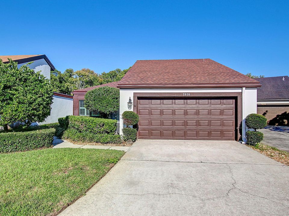 Multiple offers have been received! 2 BR + Study with Brand NEW ROOF & HVAC in 2019. Wood laminate flooring throughout main living areas. Cathedral ceiling, fireplace & art niche in Great Room. Tons of storage space & walk-in closet in Master. Updated Master Bathroom with travertine tile, separate shower & soaking tub. Updated Guest Bath offering walk in shower with decorative tile. Spacious Screened Patio overlooking pond. Very little yard maintenance. All appliances stay, including washer & dryer and handy wash tub!