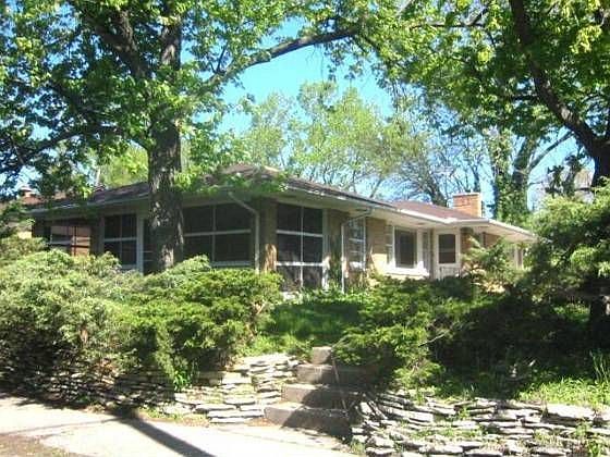 50's hillside ranch is just steps from white sand beach of Lake Michigan.
