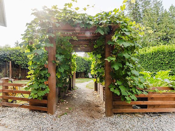 Surrounded by gardensFully fenced propertyIndoor cedar saunaLarge covered deckDetached studioFire pit area