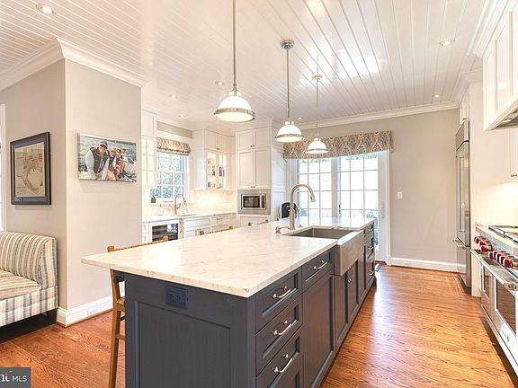 Magnificent Ruxton gem, recently and expertly renovated by Case Builders, but maintaining the old-world charm. This gorgeous sun-drenched home in the heart of Ruxton has it all! Stunning, renovated kitchen with Honed Carrara marble countertops, stainless steel appliances, WOLF stove, expansive island with sink, coffee bar, detailed backsplash, sidebar with additional sink, multiple dishwashers, fridge/freezer drawers, mud area with built-in cubbies, separate back stairwell leading to the second level, and sliding glass doors leading to the deck. As you continue through the first level, you enter the living room with beautiful built-ins, hardwood flooring, a wood-burning fireplace, overhead lighting, and incredible floor-to-ceiling French Doors leading out to the inviting covered side porch. The first level also has an enchanting dining room with a majestic mural, a warm family room with built-ins and wood flooring, and a charming powder room. As you head up the grand staircase to the second level, there is an open hall office space/sitting area with built-ins, 4 large, beautiful bedrooms, 2 baths, and upstairs laundry. The primary bedroom and bath have been meticulously renovated by Case Builders, with a private toilet, double sinks, built-in storage, heated floors, and an expansive standing shower. Travel up to the third level to two additional, generously sized bedrooms and a center full bath. As you step outside to the manicured grounds, you can relax on the deck that runs along the length of the home, or the beautiful, covered porch. The front and rear yards are both expansive, with a recent fence in the back, an invisible fence in the front, and a circular driveway as well as a two-car garage with a Tesla charger and additional room/storage above the garage. This is a must-see home.
