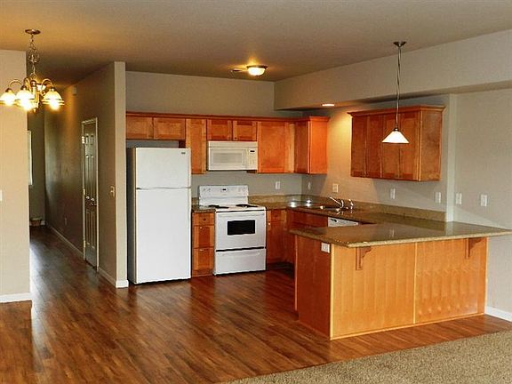 Spacious 1526 square foot town home built in 2007. Main floor has open great room, half bath, sliding door to patio, nice Kitchen that features granite counters with a breakfast bar, dining area, pendant and recessed lighting and ample storage. Both bedrooms are on the second floor and each has an en-suite bath. Unit includes master suite with a large nook area which could be used as office, hobby or exercise space, lots of storage with walk-in closet and second standard closet. Spacious en-suite bathroom, double sinks, tub shower combo and linen closet. Large second bedroom also features an en-suite bathroom and has 2 large closets. Unit features private and fenced patio, modern paint colors, fixtures and finishes. Attached single car garage is finished and has opener, second floor laundry closet, central heat and air conditioning and HOA dues include water, sewer, garbage, plus landscaping and insurance (lender may require added insurance). Close to shopping and schools.