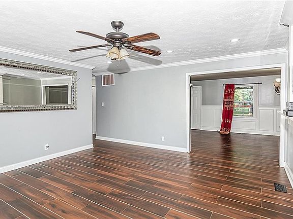 Beautifully updated all Brick Ranch home welcomes you! Newer Entry Door opens to warm neutral paint colors, recessed lighting, crown moulding & ceramic tile flooring in the Living Room. Newer white interior doors & door knobs through out. Richly stained cabinetry, newer Countertops & Backplash highlight the Kitchen. Spacious Dining Room w/newer lighting & chair rail & picture moulding. Bathroom features granite vanity w/oil rubbed bronze faucet, ceramic tile flooring & tub surround. Enjoy the large covered porch overlooking the fully fenced backyard w/mini barn. Great opportunity to own your own home!
