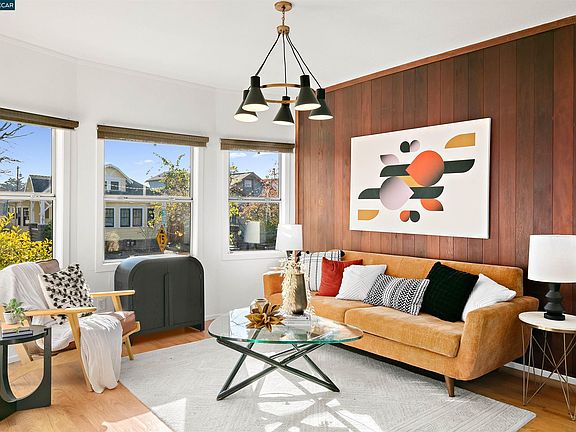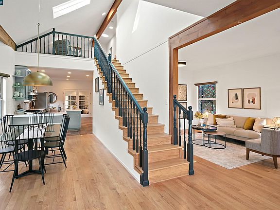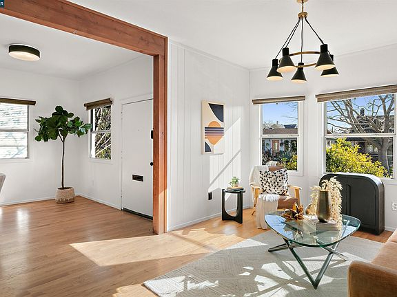 Opportunity! Welcome to this updated two-story Craftsman in North Oakland that blends classic charm with modern functionality. With 3,075 sq. ft., this home offers 4 bedrooms, 3 bathrooms, a chef’s kitchen, a spacious primary suite, and a flexible great room with endless possibilities. A covered front porch framed by lavender and lemon trees leads into a light-filled living space with high ceilings, exposed beams, and hardwood floors. The chef’s kitchen features stainless steel appliances, a walk-in pantry, an island, and a breakfast nook. A dining room and sitting area offer great flow for entertaining. A downstairs bedroom with an en-suite bath, INFRARED SAUNA, and laundry hookups adds convenience and comfort. One of the home’s standout features is the expansive great room with a private entrance—ideal for a game room, in-law unit, home office, home theater, or Airbnb rental. With its own bathroom, washer/dryer hookups, and loft area, it’s a true bonus space with serious potential. French doors open to the redwood deck and pergola, leading to a private backyard with a BBQ area, outdoor sink, and room to play or unwind. Upstairs, find three bedrooms, a loft, and a beautifully updated hall bath with heated floors. The primary suite features skylights and a walk-in closet.