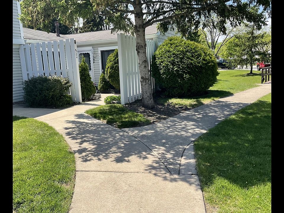 Ranch-Style Townhouse - Move-In Ready! This beautifully updated 2-bedroom, 1-bath END-unit townhouse combines comfort, style, and convenience. This home features an open and bright layout with a private porch entrance, private patio and a one car garage. The spacious, airy interior living space has plenty of natural light. Recently renovated kitchen features modern cabinets, breakfast granite countertops, stainless steel appliances. Updated flooring, crown molding, interior and sliding patio door. Fireplace in the living area. Renovated bathroom with stylish finishes. Walk-in closet and full-size washer and dryer included. Recently installed new furnace. Dining room opens to a private patio. Quiet location with no through traffic. Great seasonal swimming pool. Newly updated clubhouse available for private events. Ample guest parking!! Rentals allowed.