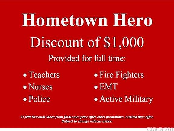 Front Porch. Expansive Kitchen has Island, deep pantry and large Dining Area. Stairway on back of home. Vaulted Master with Deluxe Bath. Huge walk in closet. Both secondary bedrooms have walk in closets. Linen in hall. Tons of Storage. This home is an incredible value with all the benefit of new construction and a 10 yr. Home Warranty! Ask about our Home Town Hero Savings!