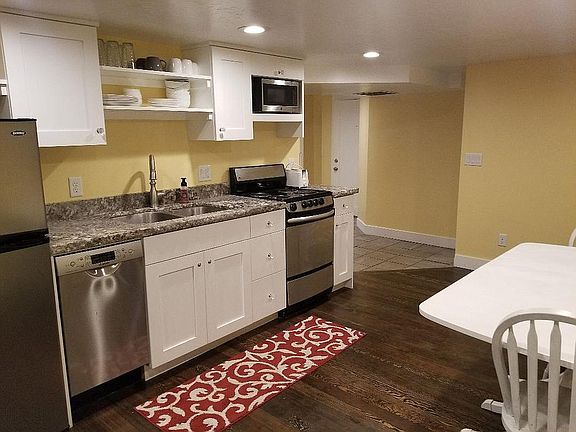Bright two bed, one bath basement apartment right across from Lindsay Gardens Park. Apartment has a large open concept living/kitchen area and in unit washer and dryer. Independent entrance. Tenants have shared use of fenced in backyard with patio and plenty of green space. This is a very safe area with a great school system and the apartment is minutes from downtown with easy access to the U and a super short walk to the nearest bus stop. Basement apartment gets use of driveway and there is plenty of off street parking. Optional use of garage space for an additional fee. Contact us to check it out today! We are dog lovers and would love to meet yours first to make sure they're a good fit! Additional 400$ deposit applies. Tenant pays for all utilities, except for internet which is partially paid landlord. The unit includes private outdoor parking, washer, and dryer.