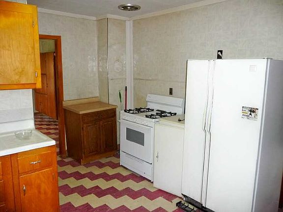 Great investment! Used as a duplex now, but could be converted back to single family. Large 2 car detached garage with storage underneath. Front and back porches. Propane hot water heat.