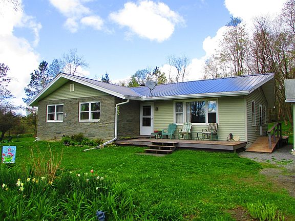 Privacy and convenient location in Milford School district. This 4 bedroom 2 bath RANCH with 2 car detached garage has NEWER ROOF, SEPTIC, WELL PUMP AND LINE, SIDING, CENTRAL A/C, ELECTRICAL ENTRANCE, GUTTERS, BASEMENT WINDOWS AND APPLIANCES. One level living and a full basement. Hard wood floors through out most of house. There are many raised garden beds for flowers or veggies, a pond and a nice stone patio over looking the pond. No neighbors right next door yet conveniently located to Milford, Cooperstown, Oneonta and Schenevus!