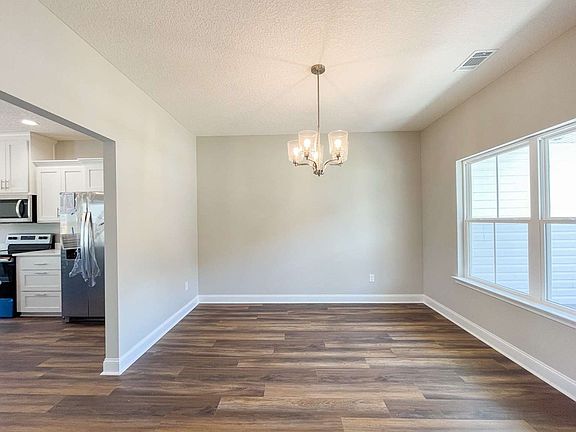 Calrton plan home centrally located in Hinesville within the Cherokee Station neighborhood. Convenient location near local shopping & dining locations as well as Cherokee Rose Golf Course! The Carlton plan features a split-layout ranch plan with open-concept living space at the heart of the home. The formal living & dining rooms flank the entryway. Moving into the home find an open family room & kitchen. The kitchen includes granite counters, a breakfast area & stainless appliances. Just off the breakfast area, travel down the hall to the hall bath with a granite vanity counter, three bedrooms or the laundry room. The master suite is located off the family room across the home and features a vaulted ceiling and private bath. The private bath includes a soaking tub, separate shower, granite vanity counter & walk-in closet.