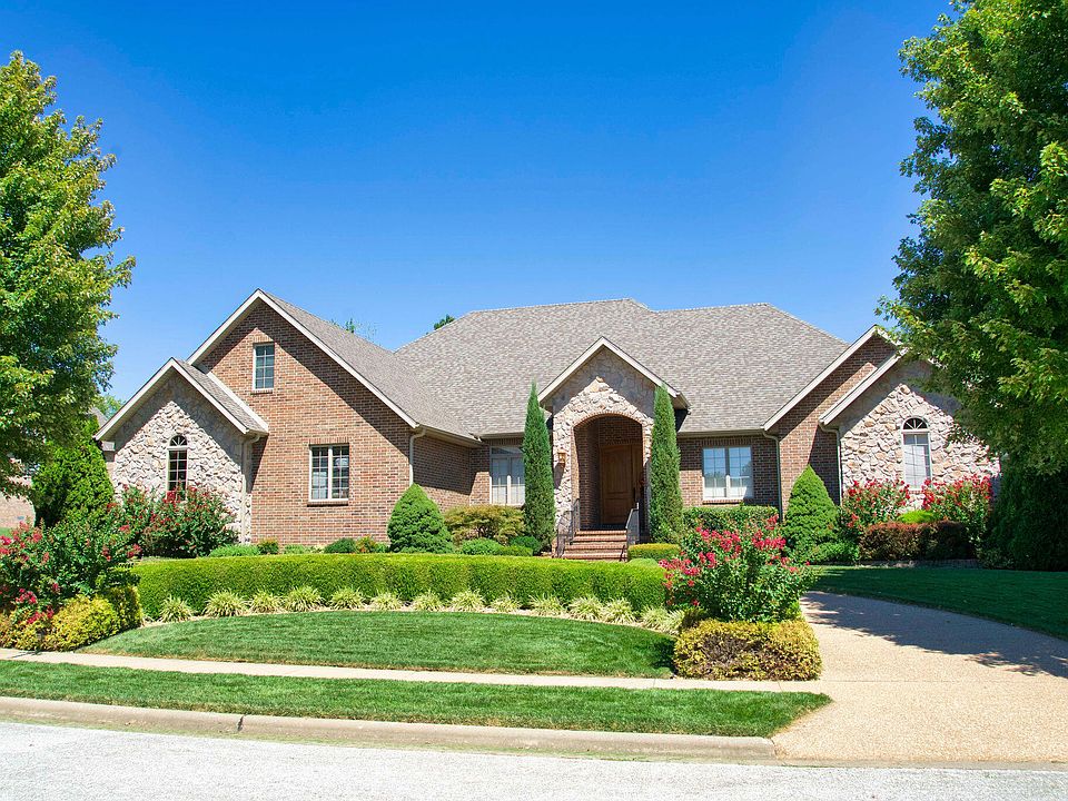 784 N. Fallbrooke Terr., Springfield, MO. - Gated Windsmore subdivision! Stunning one owner all brick home with over 3,300 sq.ft. on the main level plus an additional heated and cooled bonus room. This 4 bedroom 3 full bath home offers an outstanding open floor plan featuring a huge kitchen/hearth room with fireplace, living room, formal dining room, enclosed glass sun room, plus an oversized 3 car side entry garage. Beautiful front curb appeal with circle drive and a private back yard with an abundance of irrigated landscaping. Great closet areas and a huge upstairs storage space (28.5x13.5). Many other upgraded amenities include whole house generator, security system with 6 cameras, central vac and hardwood and tile throughout the whole main level of home! Quality built home that shows great. Hickory & Glendale Schools.