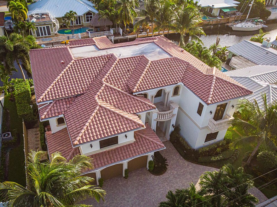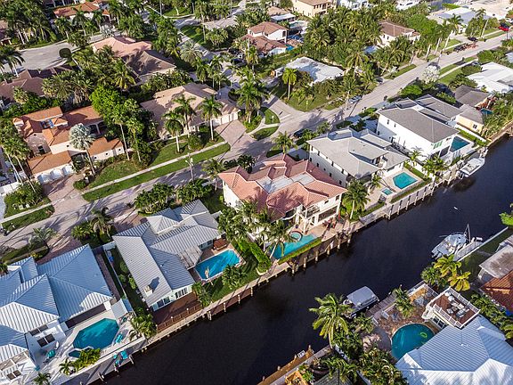 Quality Built by Ellemar Builders and Interior by Andres Silva Design. This spectacular home comes designer furnished at the buyers option. 5 Large Bedrooms plus a DEN. 1 BR/BA and the DEN with Cabana Bath are DOWN Stairs. MASTER and 3BR/BA UPSTAIRS. Looks as if it was built and furnished yesterday. The misting system in the back patio and pool keep you cool on the hot summer days. Room on the deepwater dock for your boat to 62'. Desirable southern exposure at the back of the home for fun in the Sun. This home will go quick due to it's location, configuration, style, condition and price. Excellent value right between Downtown Boca Raton and Delray Beach.