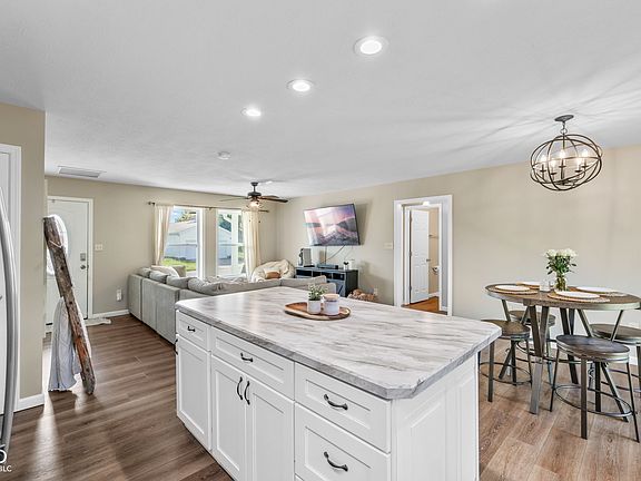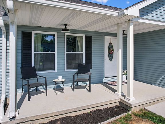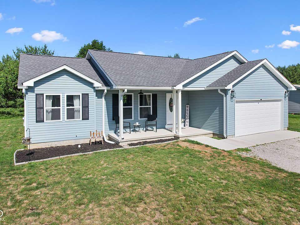 **Stylish and Modern Home in Tranquil Ladoga** Discover contemporary living in this beautifully maintained home, built just a few years ago, nestled on a quiet street in Ladoga. This single-story home boasts an open-concept design featuring three bedrooms and two full bathrooms. At the center of this delightful home is a stunning kitchen equipped with a large island, perfect for casual meals and entertaining, high-quality stainless steel appliances, and modern soft-close cabinets. The thoughtful split bedroom layout ensures privacy, placing the primary suite-with its walk-in closet and spacious shower-on one side of the house, and two well-appointed bedrooms with large closets and a shared bathroom on the other. Positioned on a quarter-acre lot, this property is enhanced by a row of trees at the back, providing privacy and a serene view. Added conveniences include a two-car attached garage with attic storage and easy access to the crawlspace. This home is move-in ready and conveniently located, offering quick and easy access to Crawfordsville, Indianapolis, and Brownsburg. Ideal for those looking for a modern home in a peaceful setting, it combines recent construction with all the comforts of a well-established residence.