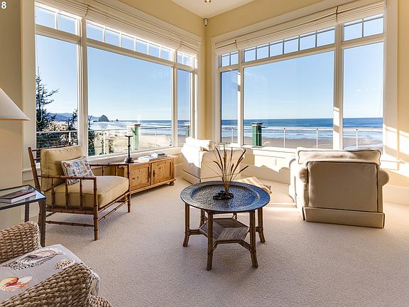LOT #2 in Chapman Pointe Custom-Built, Ocean-Front! Structurally-engineered with 57 pilings driven-to-refusal, securely anchor the foundation of this custom-built home to the hillside. Just over one acre, brings the Western boundary right to the surf. Unobstructed views of Haystack Rock and Cannon Beach, the most beautiful beach along the Northwest Coastline. Enjoy the relative privacy offered by being at the North-end of Cannon Beach, a natural beach dead-end due to the adjacency of Ecolla State Park. Enjoy family beach life in the beautiflyy-designed 4 Bedroom, 4 1/2 Baths with stunning ocean views from almost every room in the house. Georgian Red Fir floors, three wood/gas burning fireplaces, spacious game room. Relax in the in-deck hot tub overlooking the surf. High-end appliances, gourmet kitchen, 2-car garage and custom millwork throughout. New Heavy-Cedar-Shake roof and impeccable maintenance throughput make this your new forever-beach home. New High-end Security System and sevice ensure safety and security 24/7/365 for peace of mind.