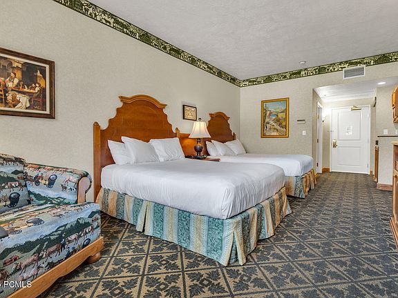 This lovely ground-floor suite at Zermatt Resort offers Swiss-inspired luxury with beautiful views and is close to the pool. It is fully furnished and includes a full bathroom, mini refrigerator, hot plate, and microwave. Located in the scenic Heber Valley, the resort features an impressive lobby, friendly staff, and numerous amenities such as indoor and outdoor pools, tennis courts, a fitness center, a spa, and on-site dining options. This unit is in the rental pool to earn money on your investment when you are not visiting. For business travelers, there are conference facilities and high-speed internet available. Outdoor enthusiasts will appreciate the location, just 20 minutes from skiing at Deer Valley and near hiking and biking trails in Wasatch State Park. Additional activities include snowshoeing, tubing, and nearby golf courses.
