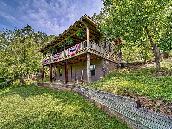 Deep Water Lakefront on Nottely just in time for summer fun, 2 adjoining rustic cabins each with a full kitchen including granite counter tops, both have a bedroom and full bath. One has a wood stove, wide plank floors and a loft with a half bath. The other has a full unfinished basement with garage. Central gas heat and air in both. The lot features approximately 132' of deep, year round water shoreline, a floating dock and pavilion by the lakeside. This would make a great weekend retreat or vacation rental and is move in ready!